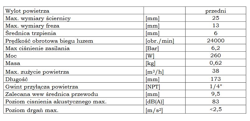 - Przedni wylot powietrza, oczyszcza powierzchnie z urobku